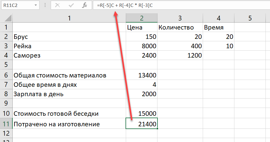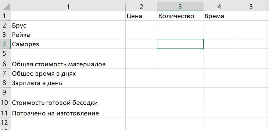 Семья решила поставить деревянную беседку на даче. Жена сказала, что проще и дешевле сделать её самому, ведь себестоимость материалов ниже цены готовой беседки, а за работу платить никому не нужно. Но муж открыл Excel, забил все нужные данные и понял, что купить готовую беседку выгоднее, чем делать самому, даже из дешёвых материалов. Как он это понял?