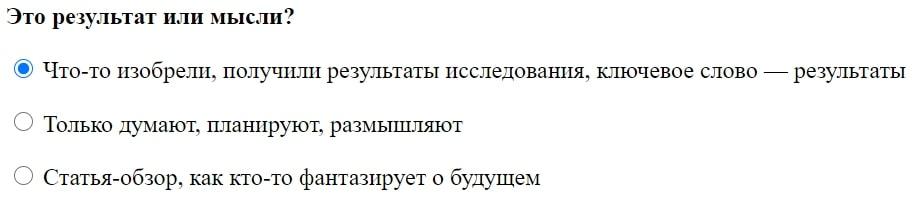 Что-то изобрели, получили результаты исследования, ключевое слово — результаты