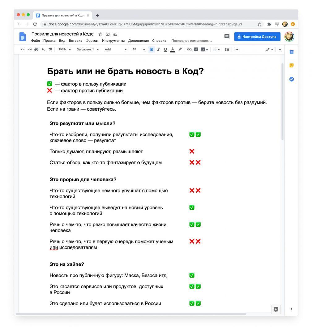 Чтобы решить эту проблему, в редакции сделали чеклист — он формализует процесс принятия решений по новостям.