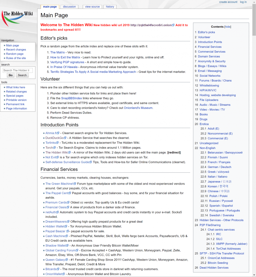 Onion-сайты размещают обычно на виртуальных хостингах, которые легко завести или так же легко сменить, если это потребуется для сохранения анонимности. По этой же причине в даркнете не работает часть ссылок, потому что хостинги, где размещались эти сайты, закрылись или переехали по новому адресу. Поэтому в даркнете популярны каталоги ссылок — специальные тематические подборки сайтов, из которых пользователи выбирают нужные. HiddenWiki — тоже пример такого каталога.