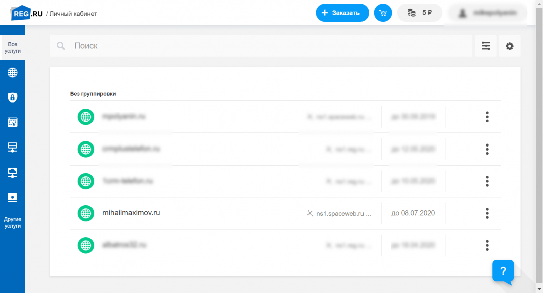 Посмотреть все домены, которые у вас есть, можно в том же личном кабинете: