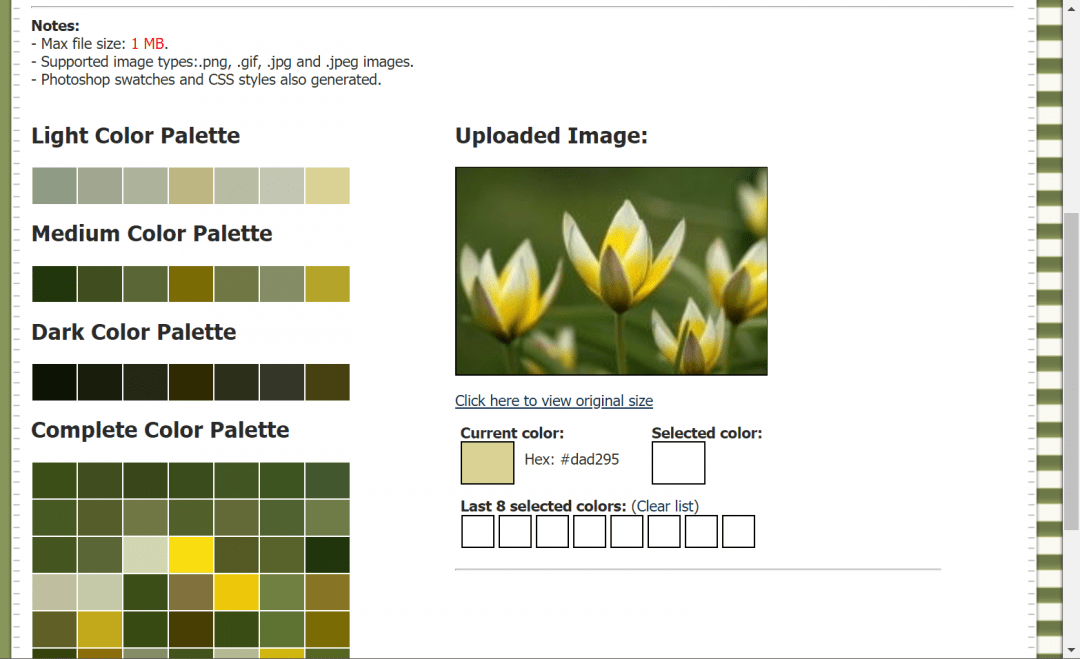 Иногда нужно сделать весь сайт в одной палитре, чтобы все цвета сочетались друг с другом или с картинками. Можно все цвета подбирать вручную, а можно зайти на этот сайт, загрузить нужную картинку, а сервис сам разложит её на цвета и предложит вам несколько палитр на выбор. Результат работы можно сохранить как CSS-файл или скопировать значения цветов вручную.
