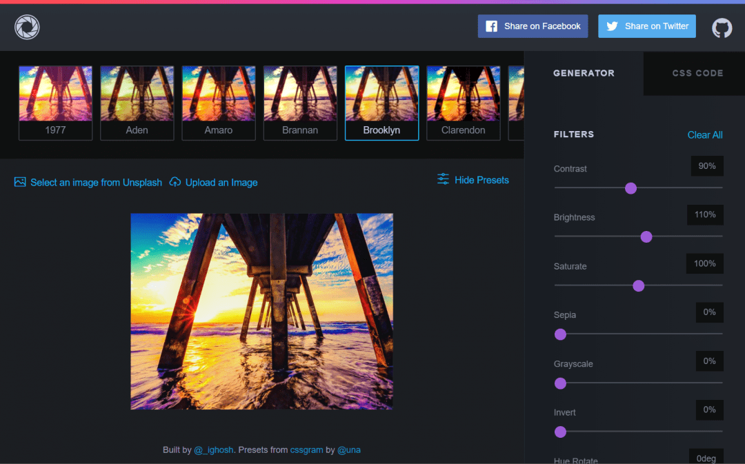 Сервис делает то же самое, что и фильтры в фоторедакторе — улучшает вашу картинку, оставляя оригинал нетронутым. Никакой магии, только чистый CSS. Если не хватает встроенных пресетов, всегда можно поиграть ползунками и получить нужный результат.