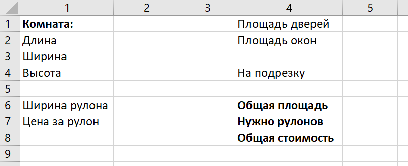 Всё, что нам пока нужно, — завести новую таблицу в Excel и подписать все поля, которые понадобятся:
