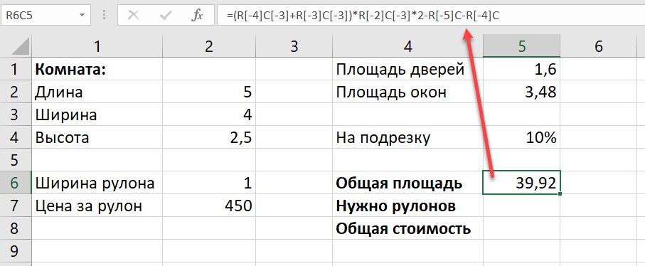 Первые 2 пункта мы сделаем одной формулой, это будет общая площадь: