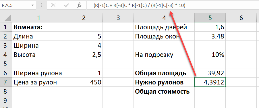 и получить в результате точное число рулонов, которые нужно будет купить. Если будет известна их стоимость — сразу выясним и бюджет.