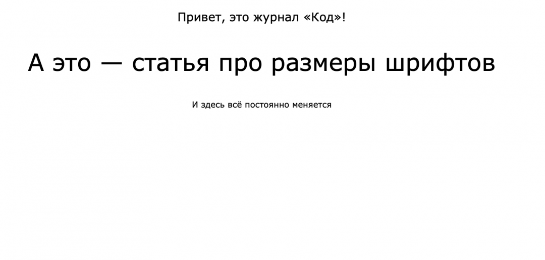 Звучит неплохо, но может плохо выглядеть: смартфоны обычно очень узкие, а экраны компьютеров очень широкие, и разница в размере шрифта будет в 5–6 раз. И если, например, основной текст фиксированного размера, а заголовки должны менять размер, то на широких экранах заголовки будут мельче, чем основной текст.