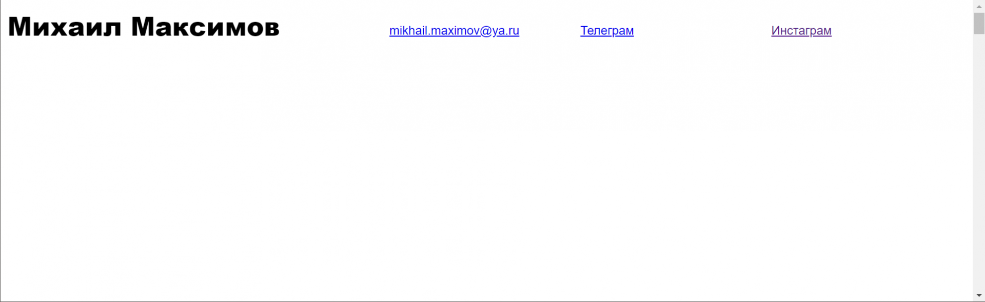 В этом разделе нам нужно написать имя и фамилию фотографа и поставить три ссылки для связи — почту, телеграм и инстаграм. Имя с фамилией поставим в первых двух ячейках этой строки, а остальные ссылки — в оставшихся.