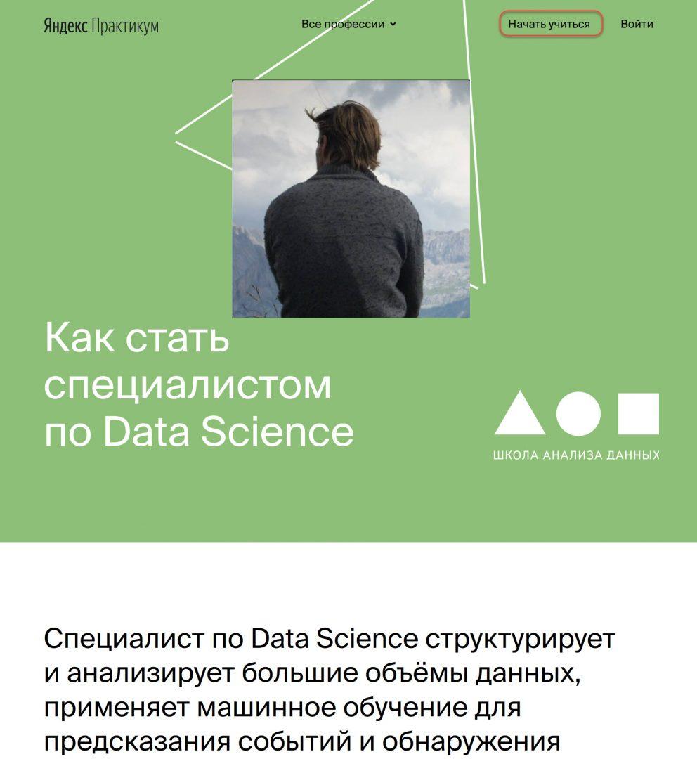 После выбора специальности вам остаётся нажать в меню «Начать учиться» и зайти в свой Яндекс-аккаунт. Если аккаунта ещё нет — сервис предложит его создать.