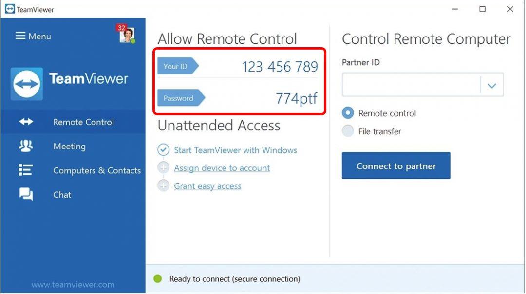 - установить на удалённый компьютер программу, которая отвечает за управление (серверная часть) — например TeamViewer;