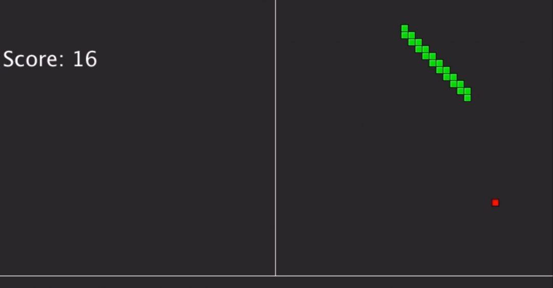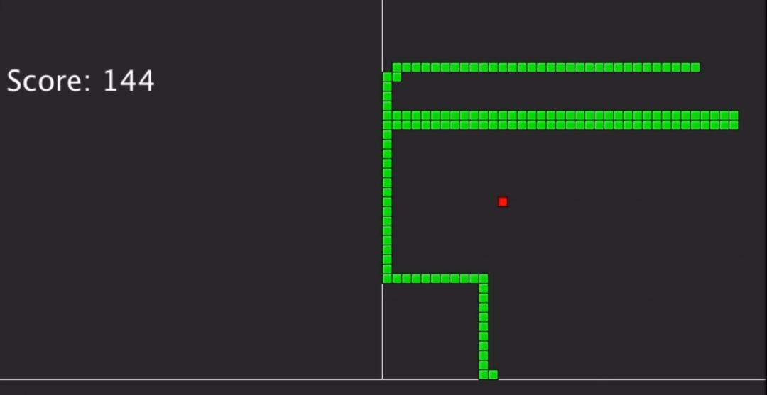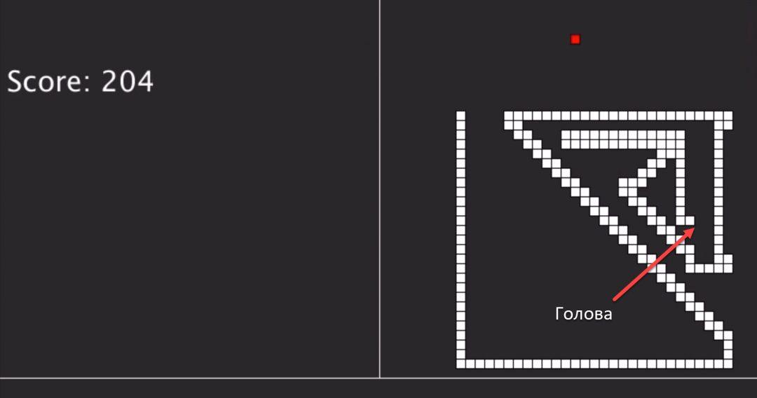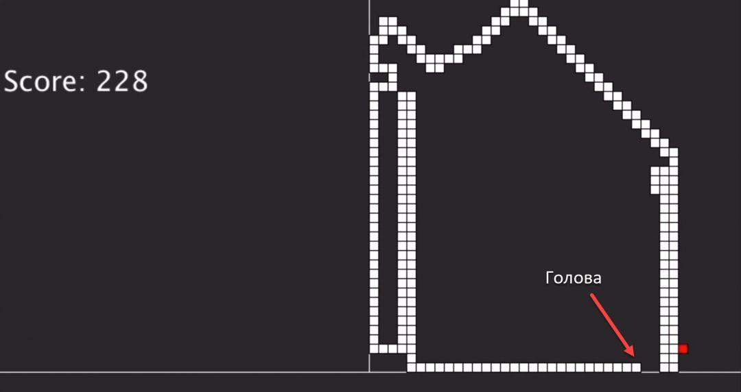 Несмотря на то, что кажется, что змейка делает всё правильно, это самая худшая версия нейронки, которая получилась у программиста. При этом умение Стёпки двигаться по диагонали — уникально, оно сильно пригодится в будущем.