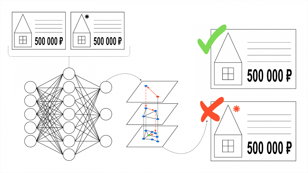 Мы решили построить систему на основе нейросети. Она должна была помочь нам находить одинаковые картинки, даже если они были серьёзно изменены – размыты, вырезана часть, изменено разрешение и т.п.